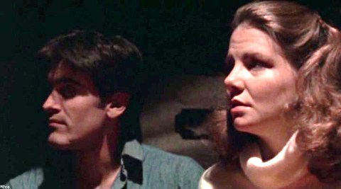 Why Cheryl of course! After hearing voices say 'Join Us', she traverses outside to ask the age old question: 'Is anybody out there?' (Man, if I had a quarter for every time I've heard someone say that...) Bizarrely, the trees and vines surrounding them come to life and hold her down so one branch in particular is able to quite literally rape her.(Was this film actually shown in theaters?)
